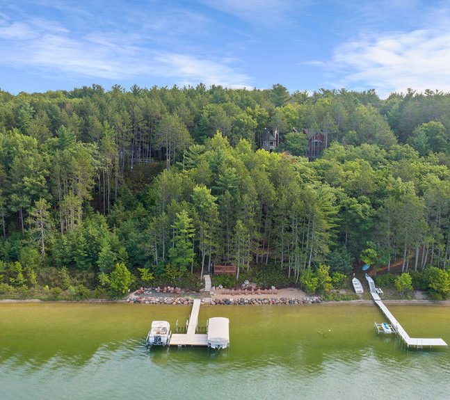 The carriage house affords all-season recreation. The summers are good for boating, jet skiing, fishing, sunbathing, and swimming. During the fall and spring, ATVs can be ridden across the many miles of trails to the east of Mullett Lake. Winter is the perfect time for snowmobiling, skiing, and ice fishing, and the location is close to several ski resorts and casinos. The property is 8 miles north of Indian River, exit 310, off I-75; 4 hours from Detroit; and 30 minutes from Pellston Regional Airport.