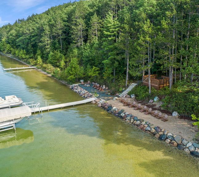 This newly built carriage house—finished in 2006—offers guests a one-of-a-kind Mullett Lake experience, allowing them full access to the lakeshore while staying in a comfortable, world-class vacation home. It is also a perfect add-on while booking Mullett Lake Home for families or corporate events looking to bring larger groups to Mullett Lake.